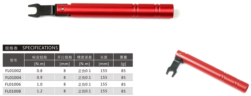 ·新型開口設(shè)計(jì),于扭力扳手結(jié)合,當(dāng)扳手達(dá)到扭矩值時(shí),頭部會(huì)產(chǎn)生90度的角度彎曲,提示扭矩值的到達(dá)。