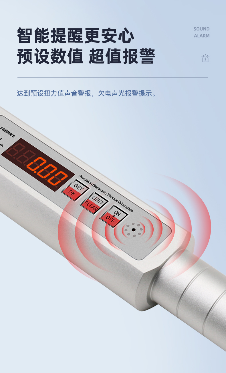 1%,數(shù)值直觀準(zhǔn)確,性能穩(wěn)定,操作方便,性?xún)r(jià)比高。產(chǎn)品附帶減震環(huán),抗震耐用,裝配及檢測(cè)皆可,是緊固力矩理想的配套工具??蓮V泛用于航空,航天,船舶,鐵路,建筑,汽車(chē),摩托車(chē),精密機(jī)械,礦業(yè)機(jī)械,電力系統(tǒng)等對(duì)緊固力矩有嚴(yán)格要求的螺紋部件安裝。通過(guò)14年不斷提升發(fā)展,此系列智能數(shù)顯扭力扳手已升級(jí)為6.0版本。
